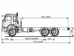 Шасси 6*6 вездеход, длина рамы 6 275 мм, межосевое растояние 4 400 мм, грузоподъемность 12.6 тонн…